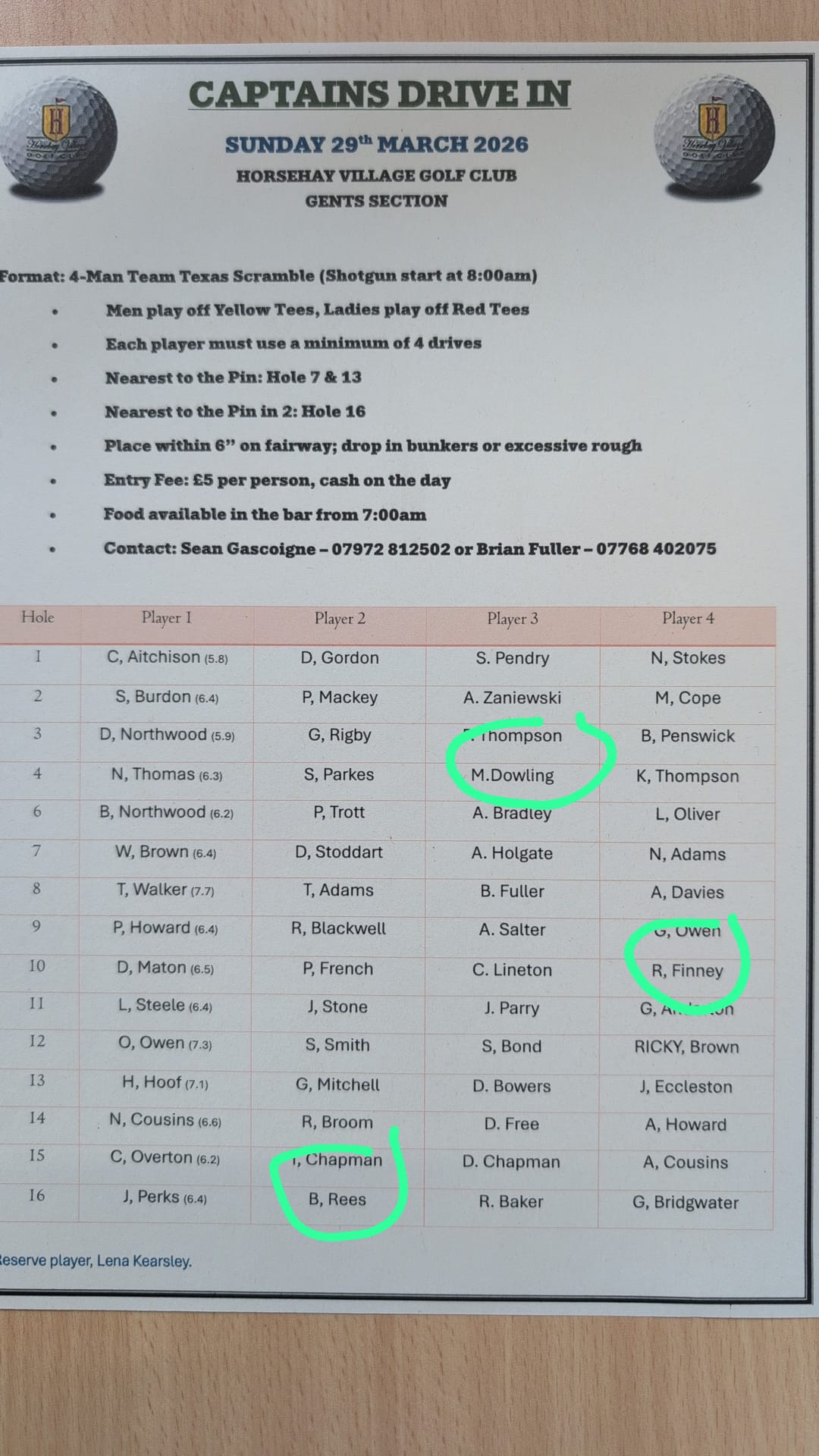 | Sun | 29th | CLUB CAPTAIN'S DRIVE-IN Tee_Times |