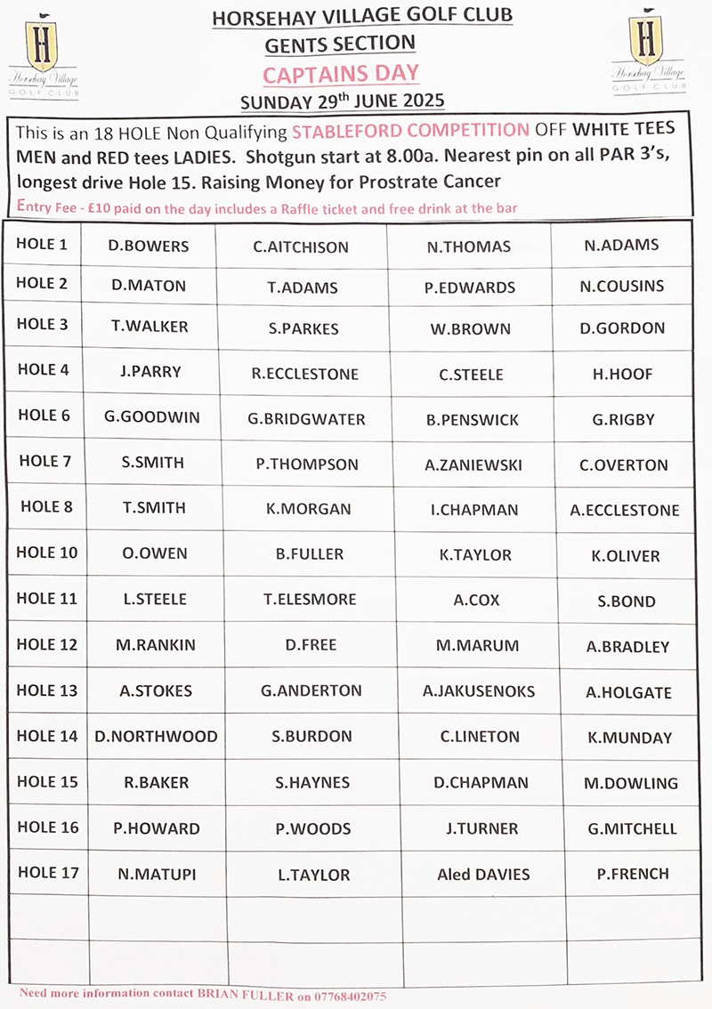 Fixtures June 2025 - including links to Tee Times where available.