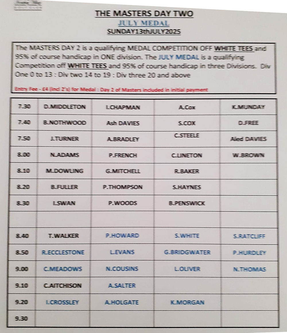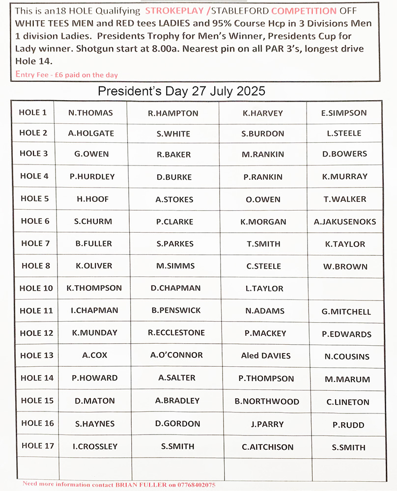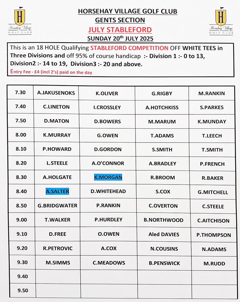 | Sun | 20th | Stableford REVISED_Tee_Times | July Stableford | |
