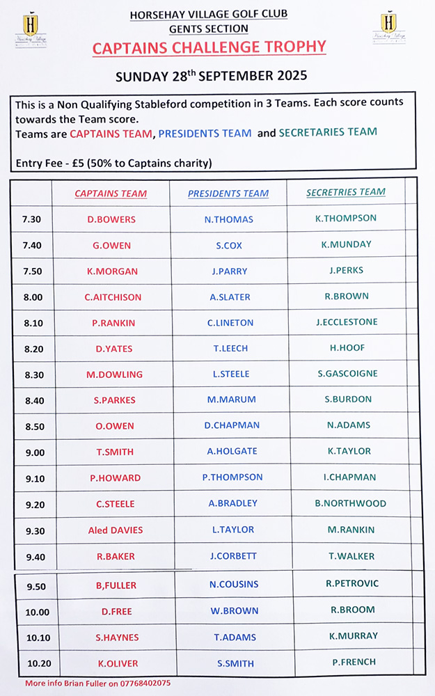 | Sun | 28th | Captain's Challenge Trophy Stableford Tee_Times |