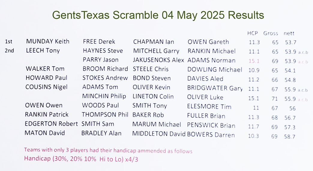 | 04-May-2025 | GENTS TEXAS SCAMBLE RESULTS | Gents |